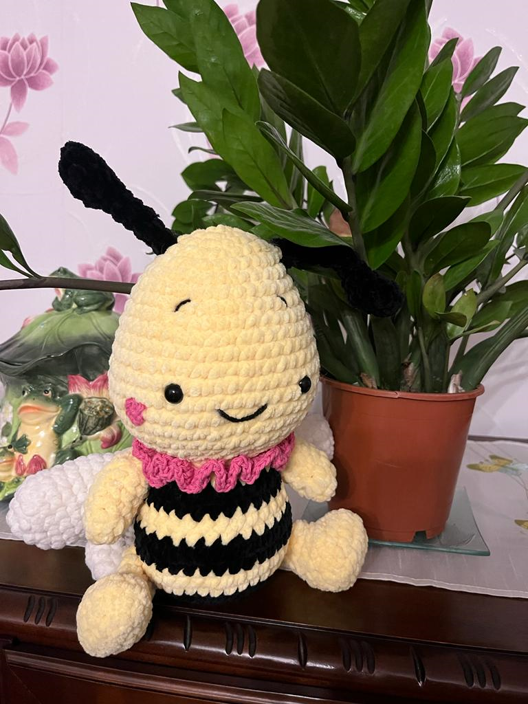 Peluche amigurumi abeille crochetée dans une laine toute douce et oeko-tex.